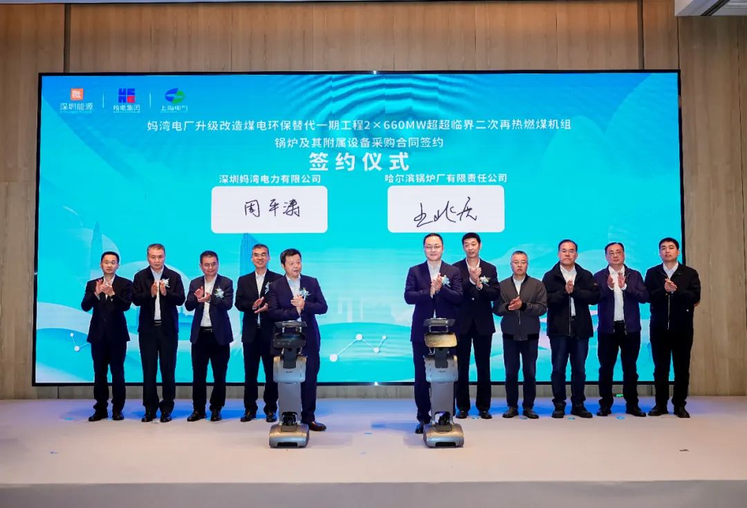日前,深能源媽灣2×660MW超超臨界二次再熱三大主機設備合同簽約儀式在深圳舉行。深圳能源集團股份有限公司副總裁邵建平,哈電股份公司副總裁、哈電集團市場部總經理陳冬石,哈電鍋爐總經理、黨委副書記王兆虎,以及相關人員出席簽約儀式。簽約儀式上,哈電鍋爐與深能源集團簽訂了深能源媽灣2×660MW超超臨界二次再熱項目鍋爐合同。